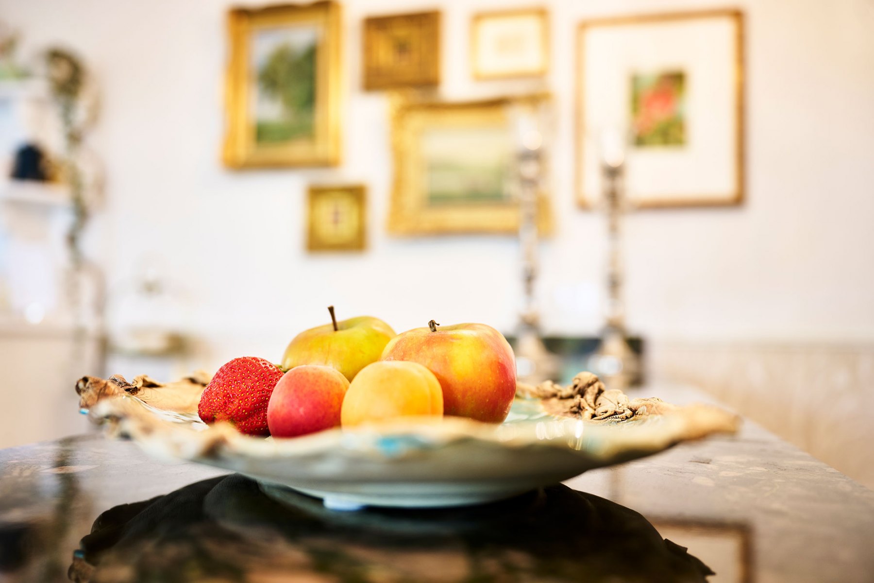 Genießen Sie Ihr Frühstück oder Ihren Sonntags-Brunch in unserem liebevoll eingerichteten Café. Oder sitzen sie bei schönem Wetter im Garten unter einem Mandelbaum.